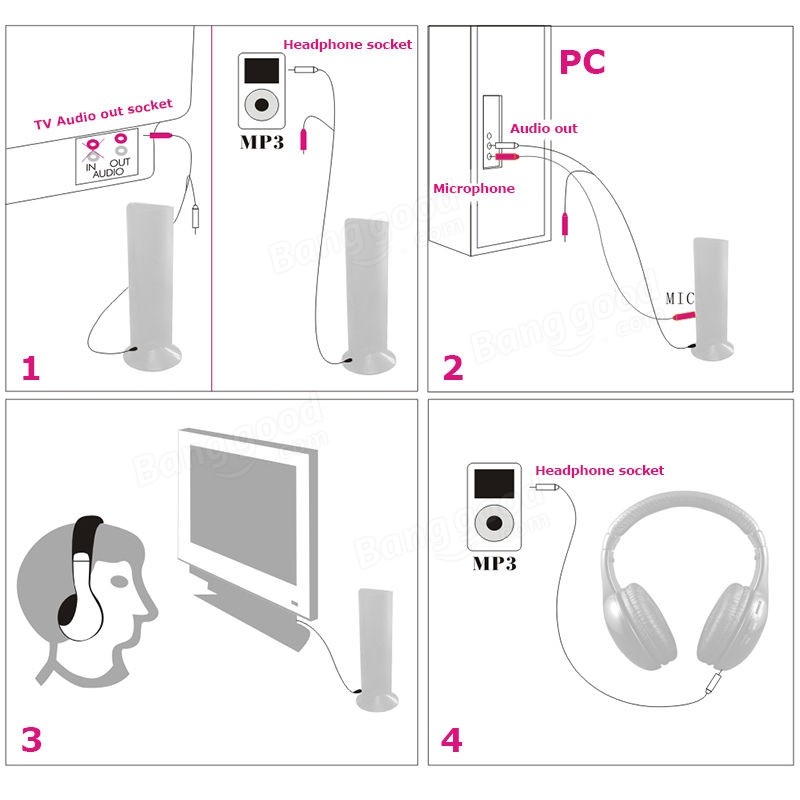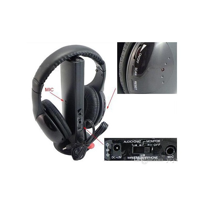 Безжични слушалки: Безжичен прием от всеки електрически уред с аудио изход, като например звук от телевизия, компютър, игри, DVD плейър, VCD плейър, аудио устройства, MP3 плейър, както и CD плейър.