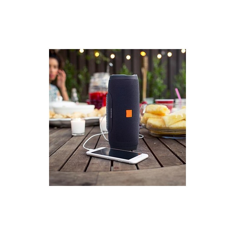 Безжична блутут колонка с изключително чист звук и силен бас - мощност цени 15W. Преносимата колонка е висококачествена реплика на световноизвестната марка JBL Charge Mini. Притежава и вградено FM радио. Колонката е практична и удобна за ползване на открито и закрито с достатъчно силен звук.