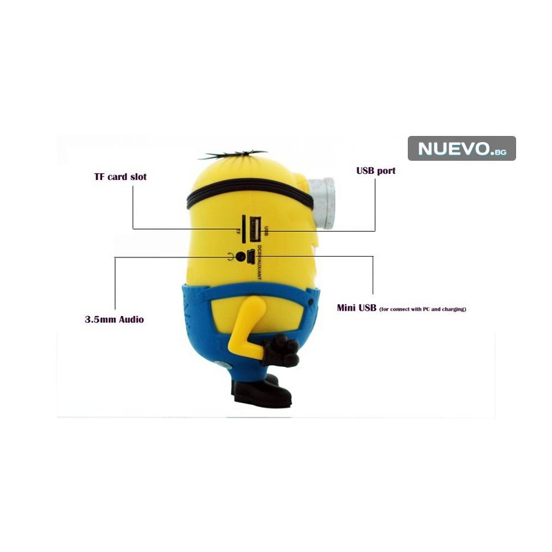 Мини Миньонът има вградена презареждаща се Li-Ion батерия позволяваща работа до 10 часа.
