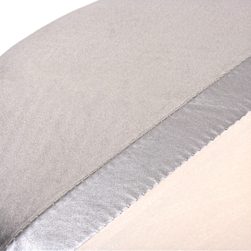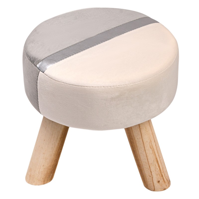 Декоративно столче в кръгла форма с 4 стабилни крака, изработено от дърво с меко покритие в бяло и сиво.