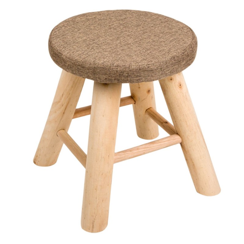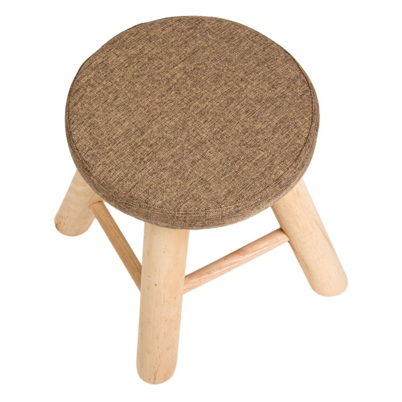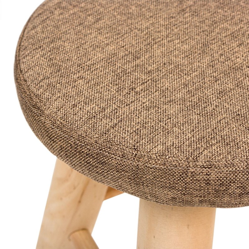Декоративно столче в кръгла форма с 4 стабилни крака, изработено от дърво с покритие от полиестер в кафяв цвят.