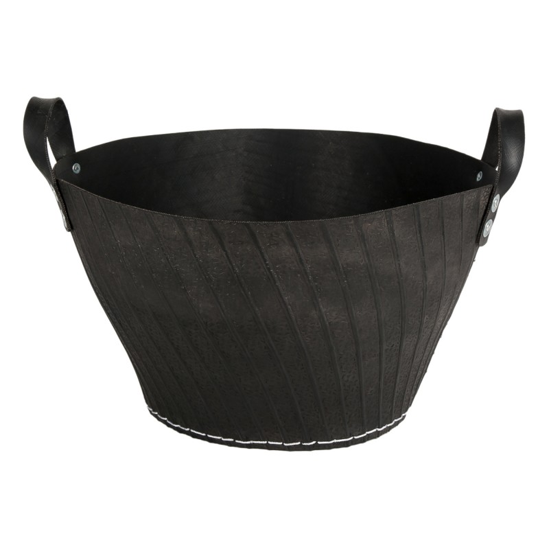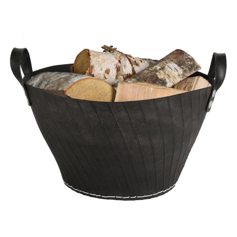 Кошница за пренасяне и съхранение на дърва за камина, изработена от висококачествен устойчив каучук в кафяв цвят с удобни дръжки със здрави шевове за лесно носене.