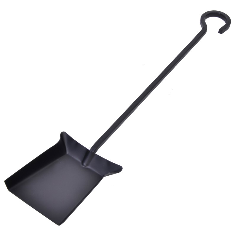 Лопатка за камина, изработена от ковано желязо в черен цвят с дълга и удобна дръжка с възможност за закачане.