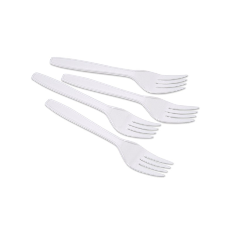 10 броя вилици за еднократна употреба, изработени от здрава пластмаса в бял цвят.