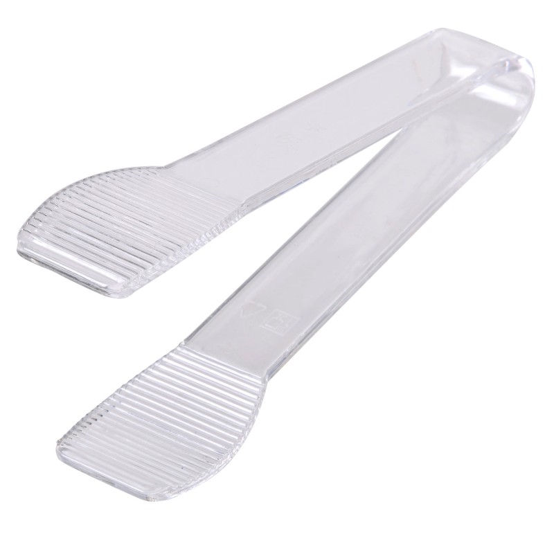 Кухненска щипка за лед, изработена от здрава и устойчива прозрачна пластмаса с удобна дръжка за лесен и стабилен захват при употреба.