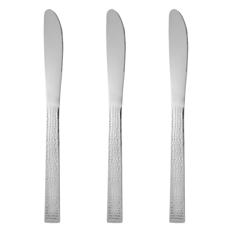 Комплект от 3 броя ножове за ястия и предястия, изработени от висококачествена неръждаема стомана в сребрист цвят с красива релефна дръжка.