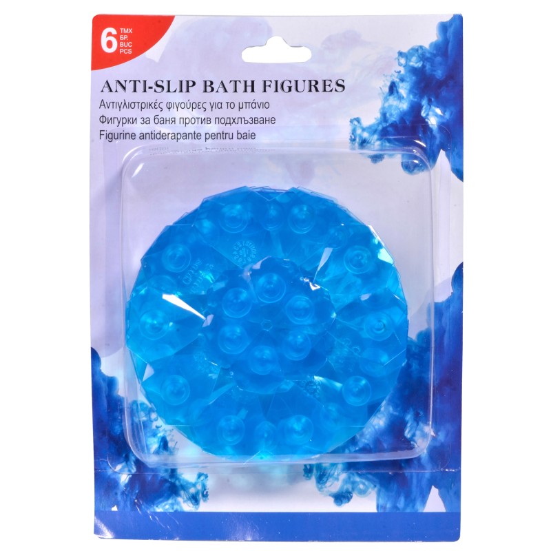 Комплект от 6 броя стъпки против хлъзгане в банята, изработени от висококачествени материали с кръгла форма в син цвят.