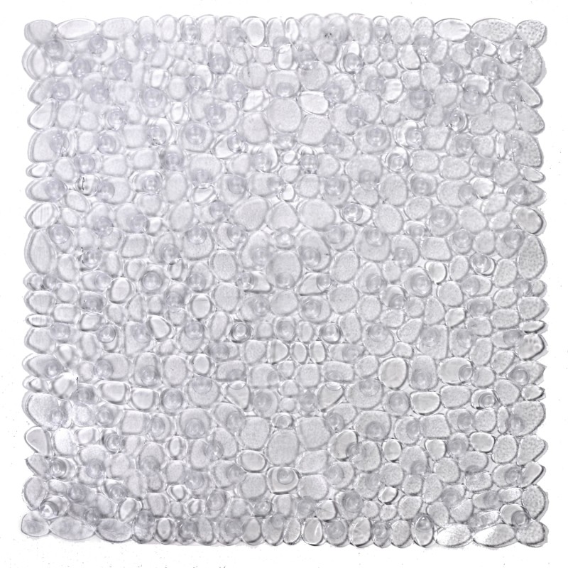 Постелка за баня, изработена от здрава и устойчиви материали, имитираща камъчета в сив цвят с противохлъзгащо покритие.