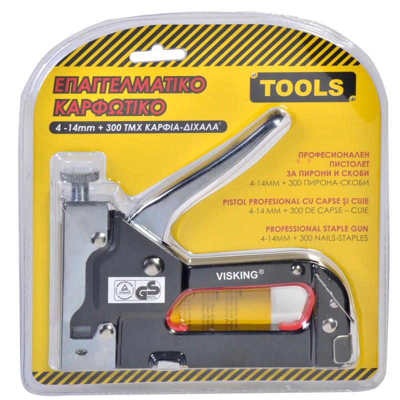 Професионален механичен пистолет (такер) за пирони и скоби (4-14 мм.) в комплект с 300 броя пирони и скоби.