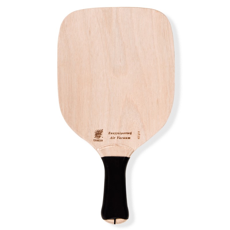 Професионална ракета за плажен тенис, изработена от дърво със специална противоплъзгаща дръжка в черен цвят и въздушен вакуум.