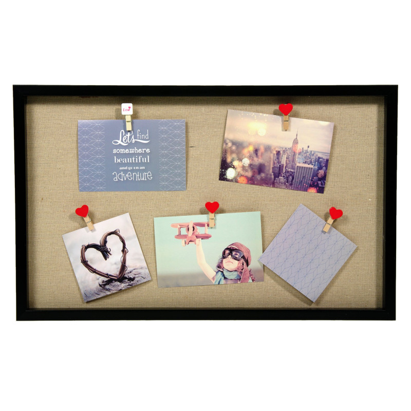 Табло за снимки и бележки, изработено от качествена дървесина с 5 броя щипки във формата на сърца и позитивни послания.