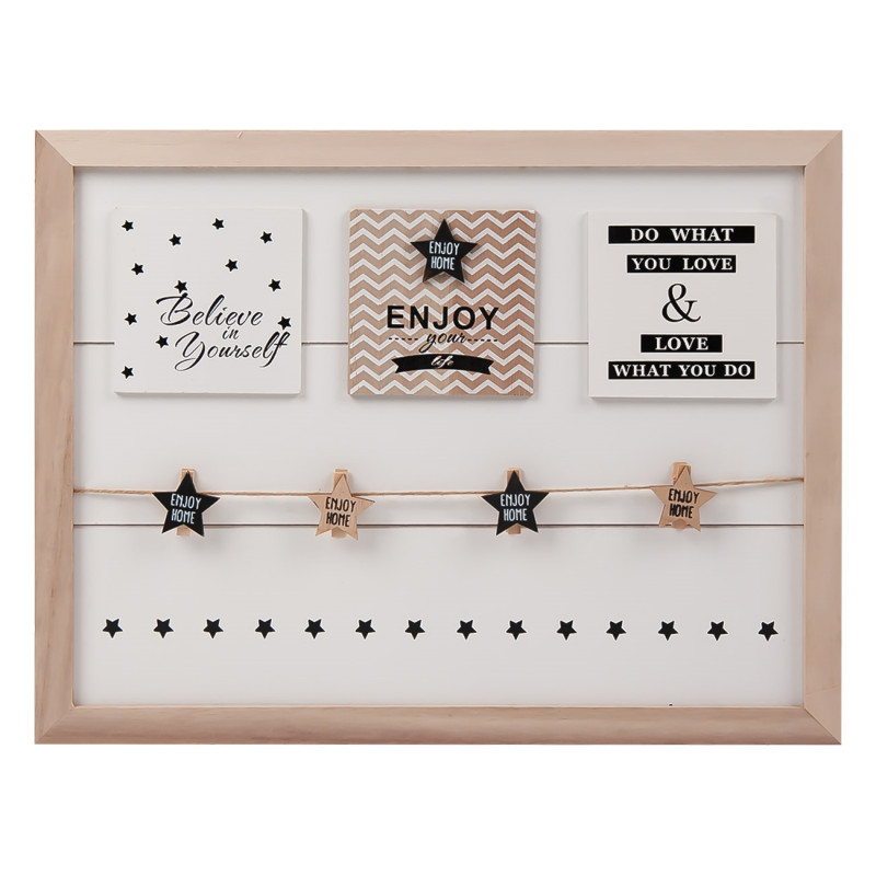 Табло за снимки и бележки, изработено от качествена дървесина с 4 броя щипки във формата на звездички и позитивни послания.
