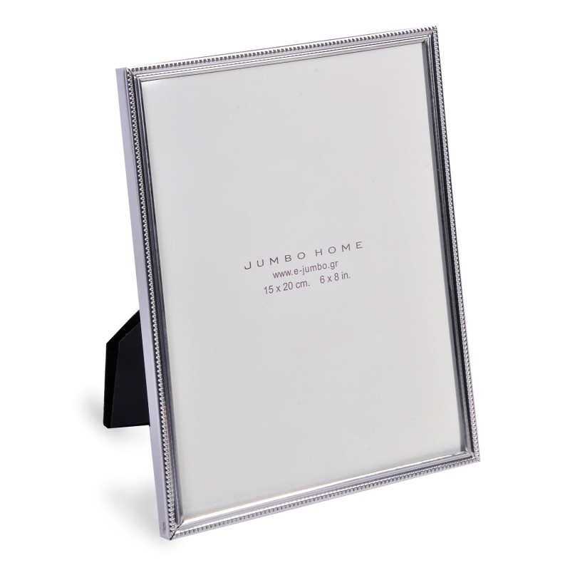 Класическа рамка за снимка със стойка, изработена от метал в сребрист цвят и стъкло.