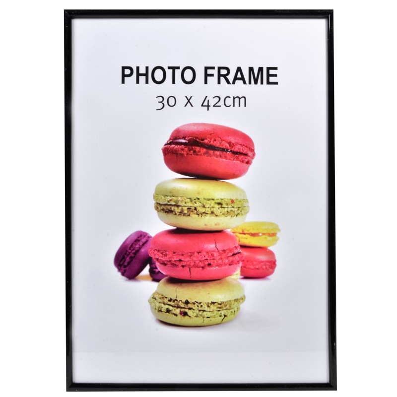 Класическа рамка за снимка, изработена от олекотена пластмаса в черен цвят и стъкло.