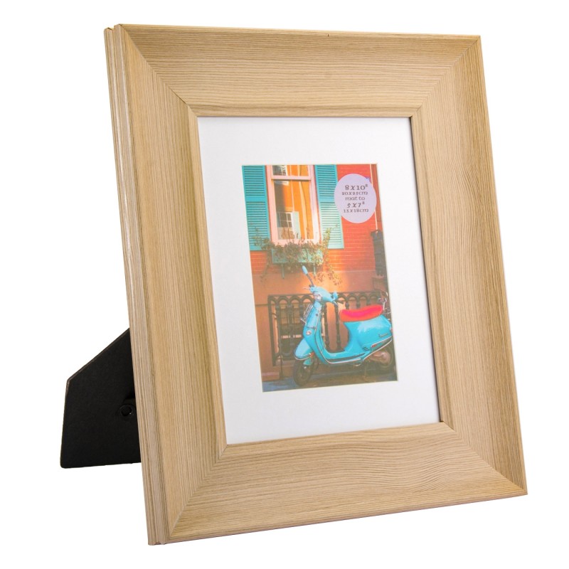 Рамка за снимка със стойка и паспарту, изработена от качествена дървесина в естествен цвят и стъкло.