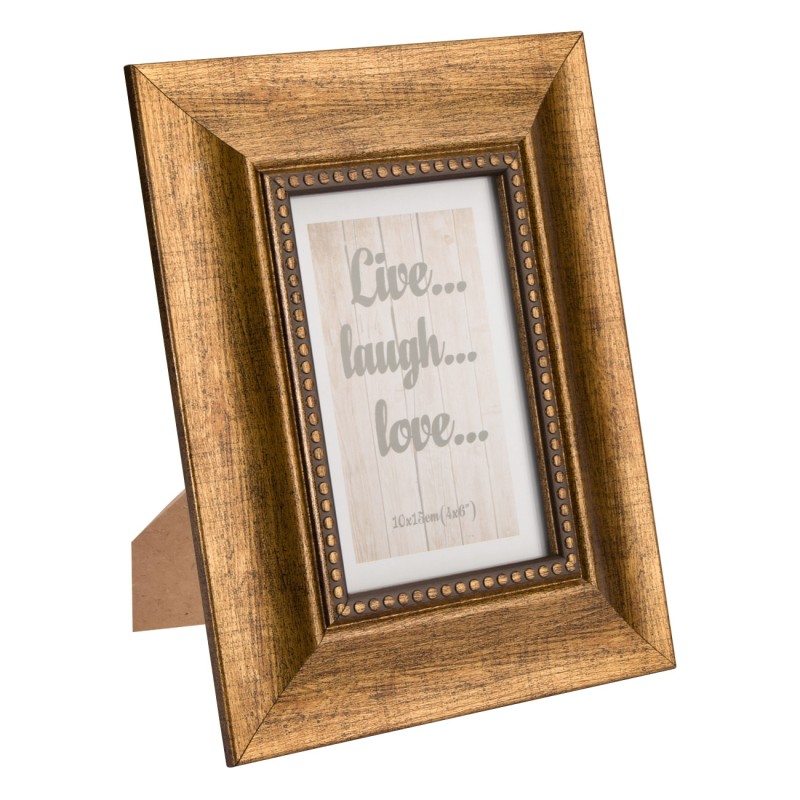 Декоративна рамка за снимка със стойка, изработена от качествена дървесина в бронзов цвят и стъкло.