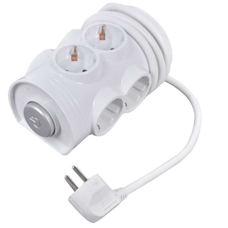 Разклонител с 6 гнезда тип шуко, копче за включване / изключване и кабел с дължина 12 метра.