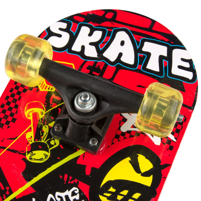 Класически скейтборд, изработен от високоустойчива, здрава и плътна дървесина с разноцветни тематични графити от двете страни на дъската.