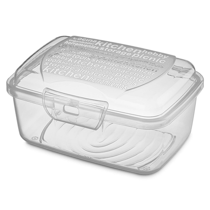 Прозрачен пластмасов контейнер за съхранение на храна с подвижен капак. Капакът е с клик-клак система, гарантираща плътно, херметизиращо затваряне.