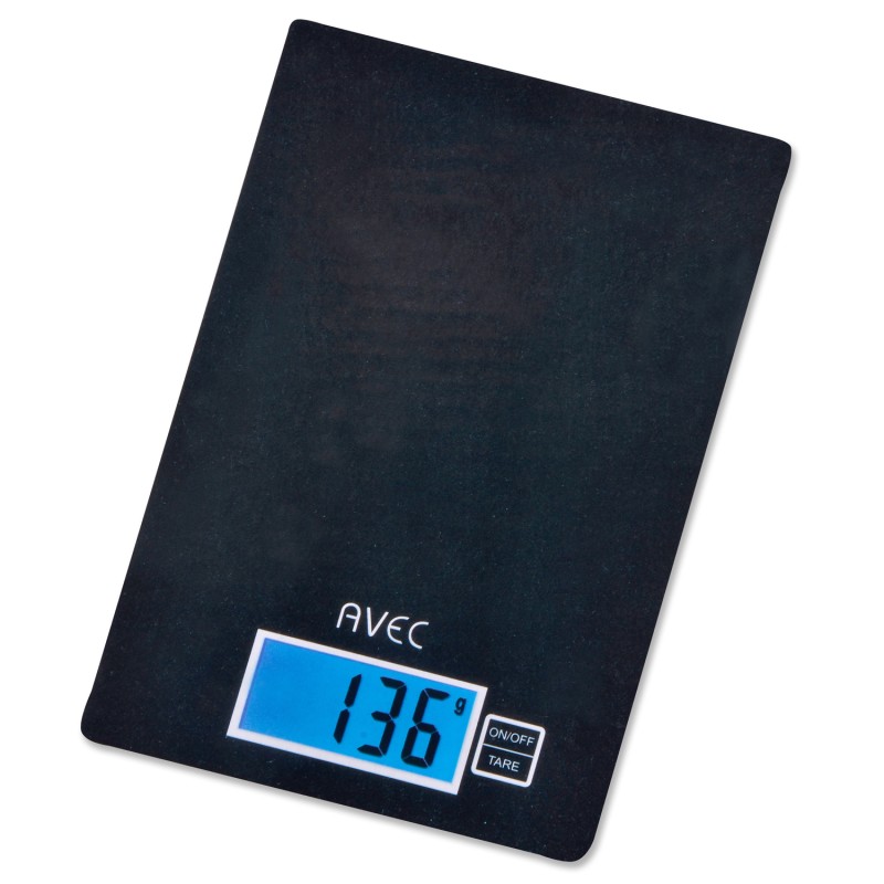Електронна кухненска везна AVEC, изработена от висококачествено стъкло в черен цвят с капацитет 5 кг. Разполага с LCD екран.