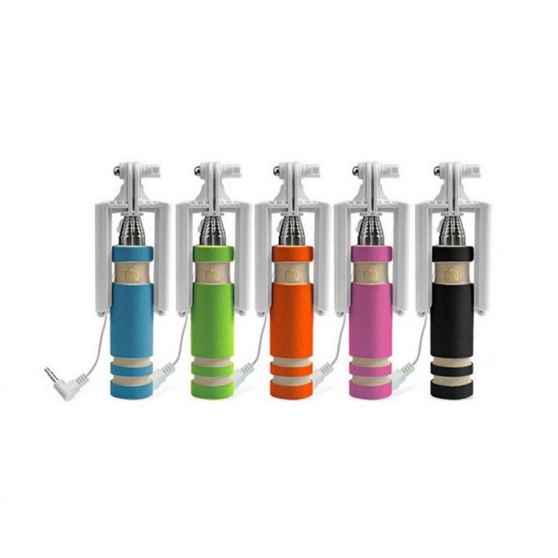 Представяме на вашето внимание супер луксозния селфи стик с телескопично разпъване за самозаснемане с кабел подходящ за всички модели телефони. Благодарение на този ултрa лек, мега компактен селфи стик (selfie stick) тип монопод, правенето на селфи снимки и видея никога не е било по - лесно и забавно. Дължината на монопод селфи стик-а може да се регулира, като максималната дължина е 80 см, а в сгънато положение е само 18 см (приблизително колкото iPhone 6 ). Универсалната поставка на selfie stick-а е подходяща за всякакви телефони, изработена е изцяло от пластмаса и е покрита с висококачествен силикон, които предпазва от изплъзване, надраскване и всякакви други повреди. Формата на поставката на селфи стика-а е така изработена, че телефона си има легло в което да влезне, а в същото време бутоните отстрани да не се натискат. Висококачествения силикон и формата на поставката позволяват да поставите вашия смартфон на selfie stick-а заедно с неговия калъф. Този монопод селфи стик има вграден бутон за снимане поставен на удобно място на ръкохватката му.