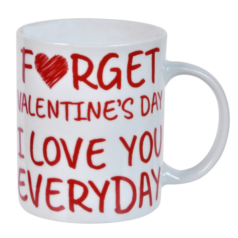 Чаша за топли напитки, изработена от висококачествен порцелан в бял цвят с любовно послание в червено и практична дръжка.