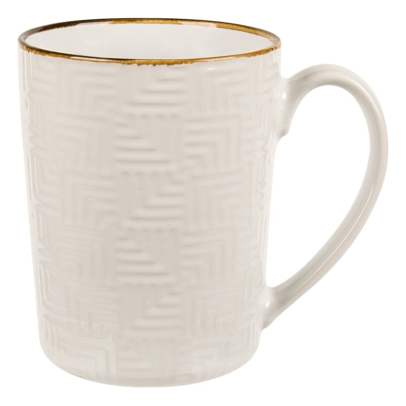 Релефна чаша за топли напитки, изработена от висококачествена керамика в бял цвят с практична дръжка.