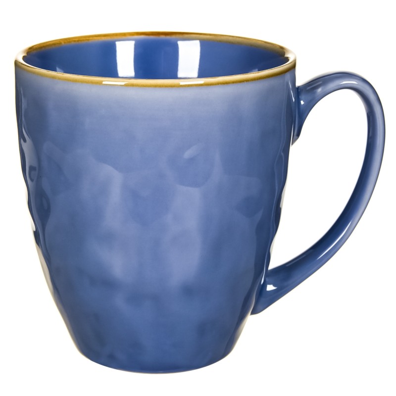 Релефна чаша за топли напитки, изработена от висококачествена керамика в син цвят с практична дръжка.