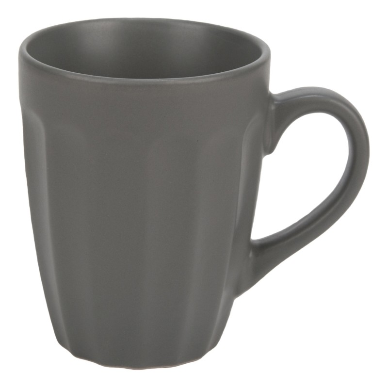 Чаша за топли напитки, изработени от висококачествена керамика в цвят графит с релефна повърхност.