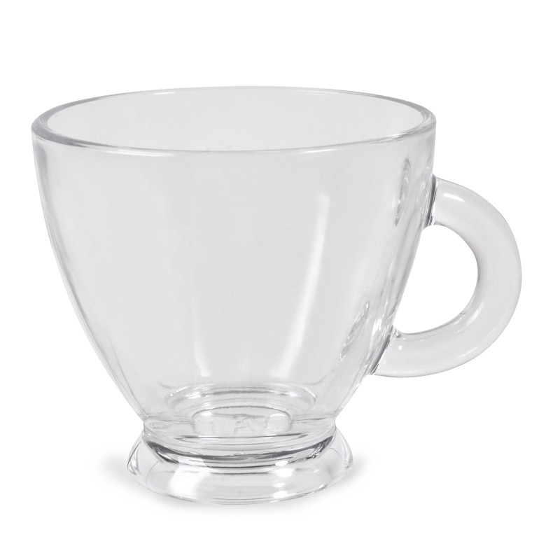 Чаша за топли напитки, изработена от висококачествено прозрачно стъкло с практична дръжка.