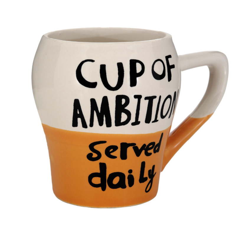 Чаша за топли напитки, изработена от висококачествена керамика в бяло и оранжево с надпис Cup of ambition и удобна дръжка.