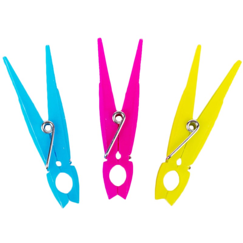 16 броя разноцветни домакински щипки за пране, изработени от здрава пластмаса, устойчива на атмосферни влияния.
