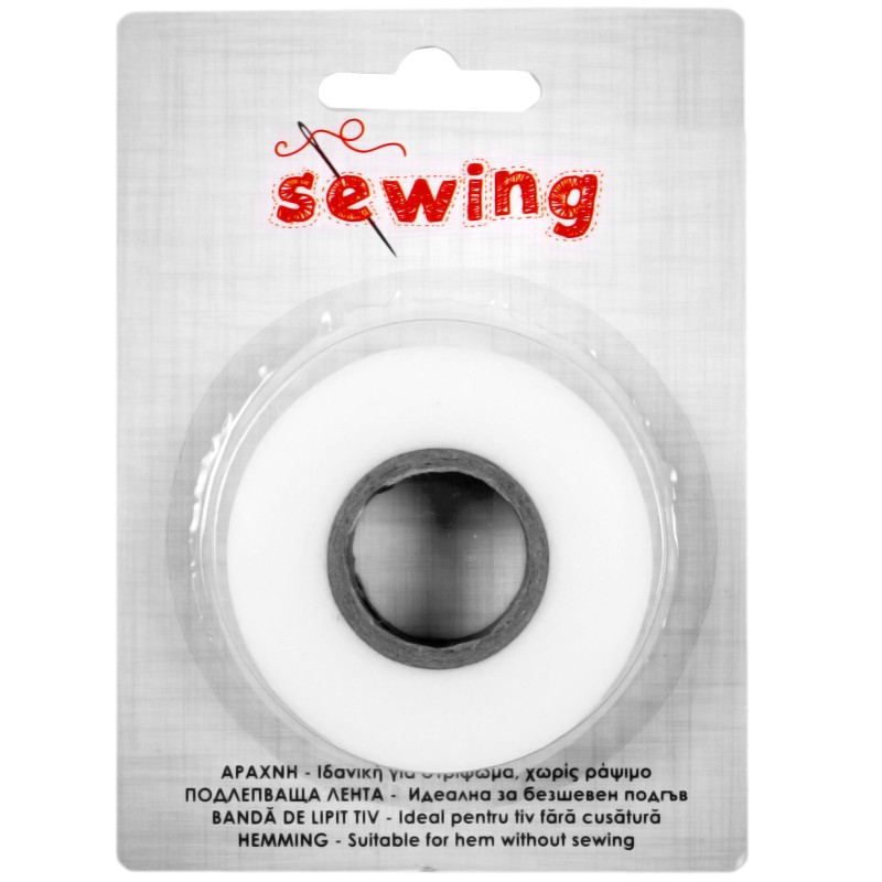 Подлепваща лента в бял цвят, предназначена за безшевен подгъв на поли, панталони, рокли и др.