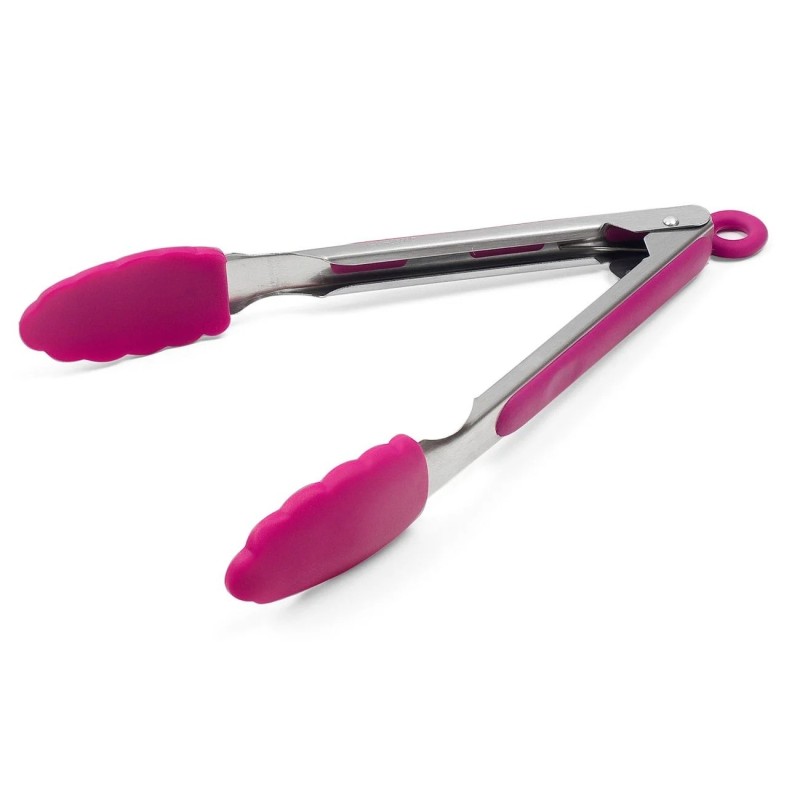 Метална щипка за скара, готвене и сервиране със силиконово покритие в лилав цвят - на самата щипка, както и по дължината на дръжката за по-удобен захват.