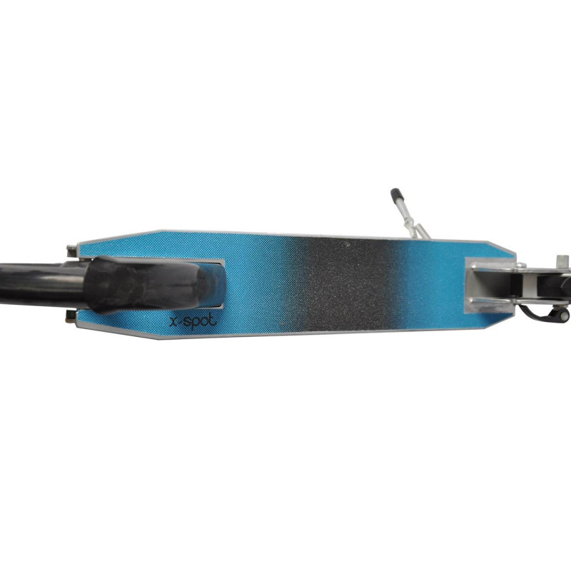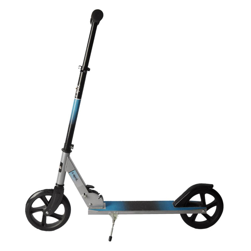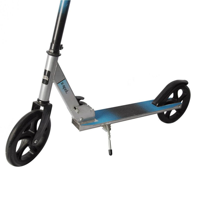 Детска тротинетка в сребрист цвят с усилено монолитно кормило за 360° въртене, алуминиева конструкция и масивни колела, които правят возенето меко и приятно.