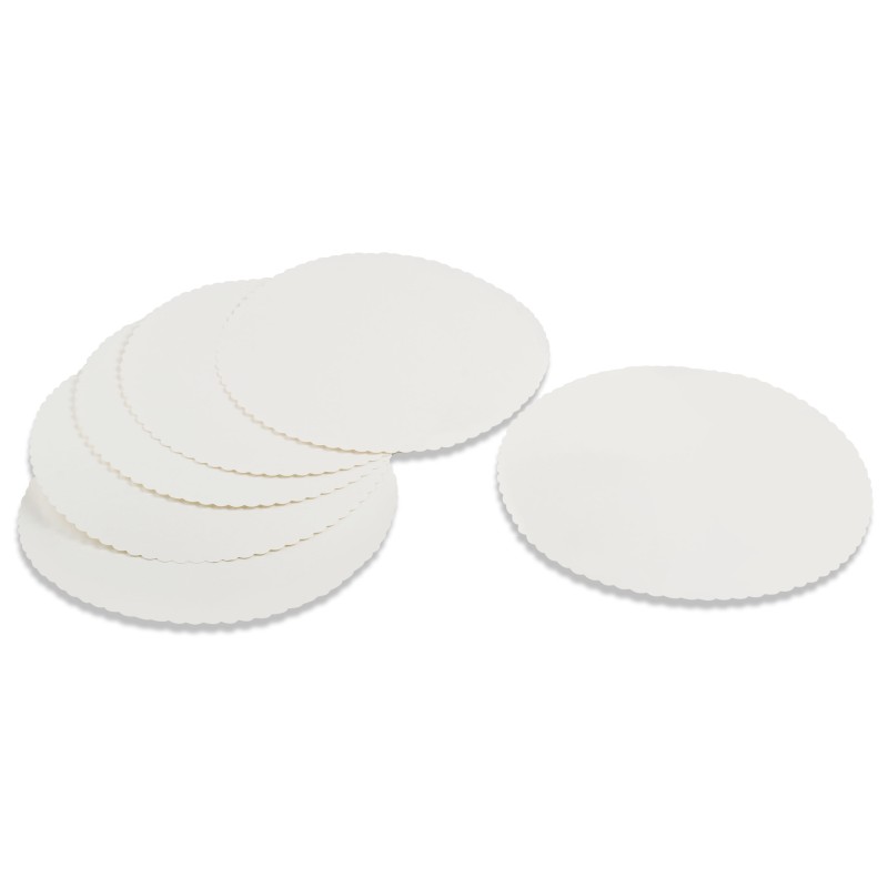 Комплект от 6 броя големи хартиени подложки за сладки в бял цвят.