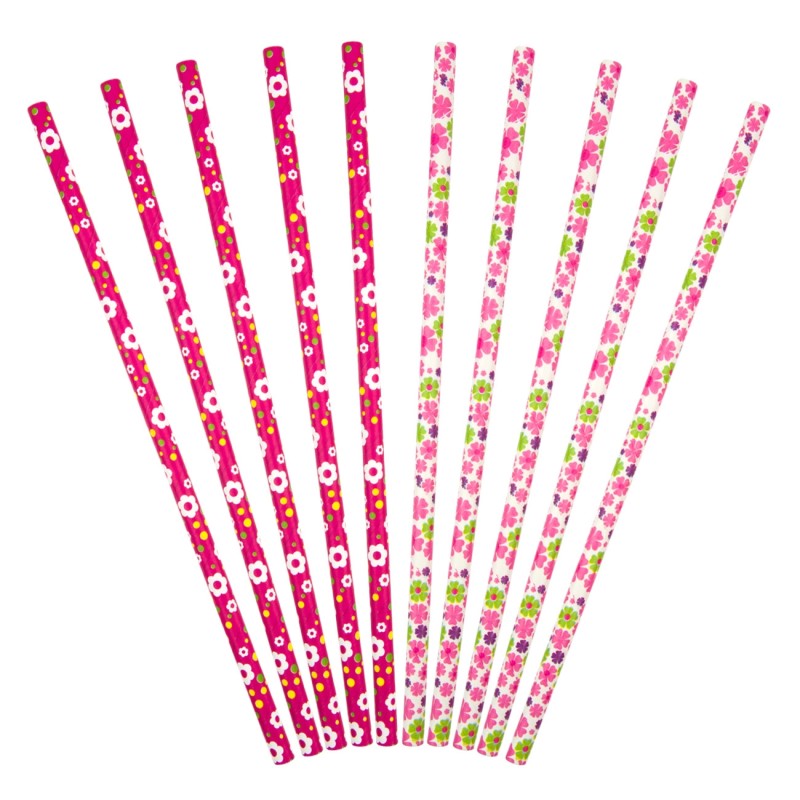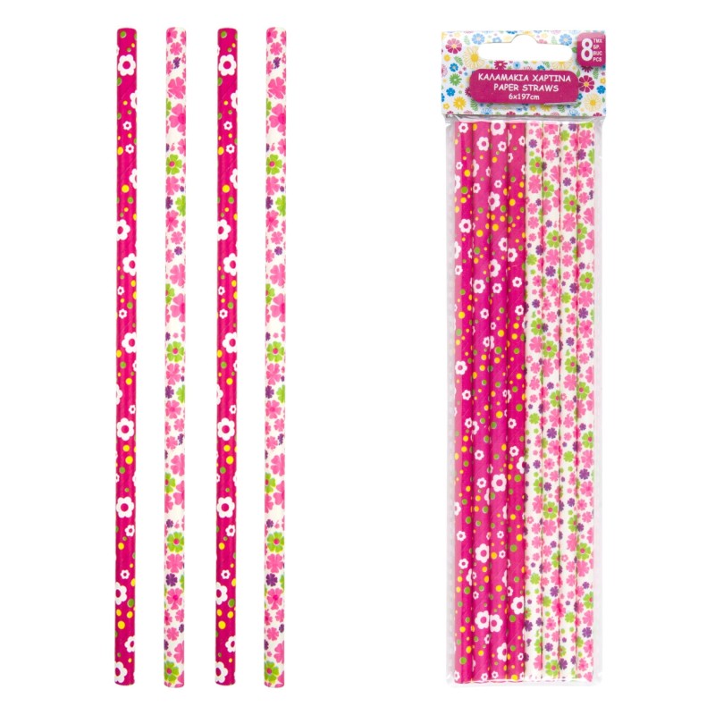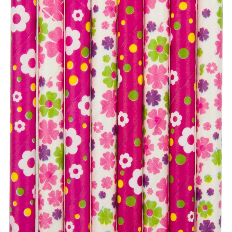 8 броя универсални сламки, изработени от хартия в бяло и цикламено с красив флорален принт.