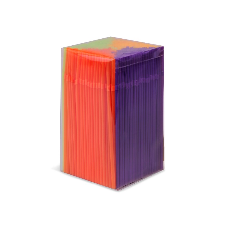 500 броя коктейлни сламки, изработени от пластмаса в различни цветове с огъваща се зона.