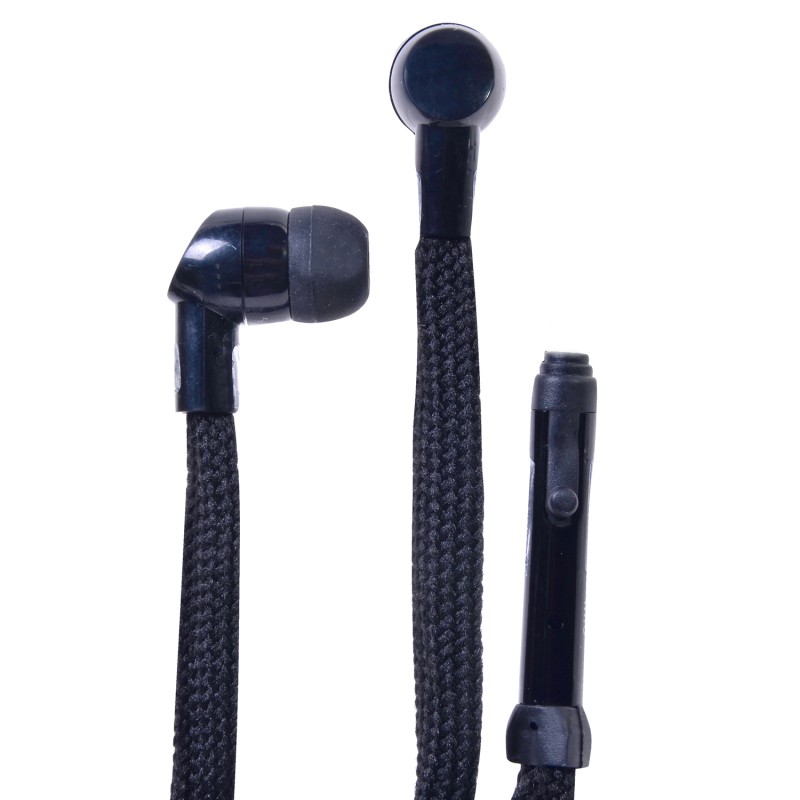 Със специален кабел - тип връзки за обувки с дължина 120 см., който не се оплита.