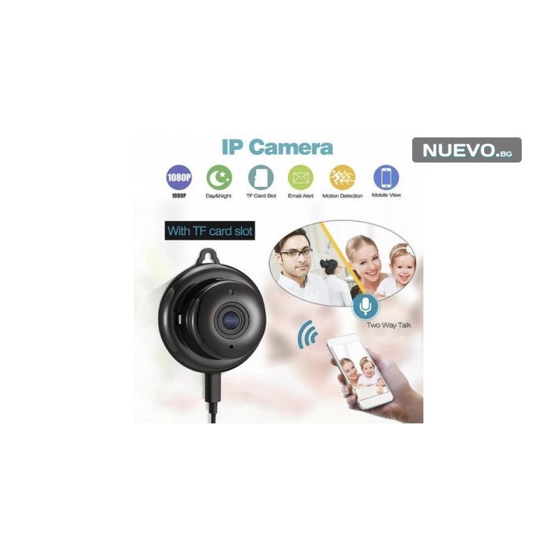 Най-доброто качество охранителна, безжична wifi камера, бебефон за компактните си размери на пазар. Камера се настройва с приложение от вашия смартфон(ios и Андроид) много бързо и лесно и се настройва и свързва с вашата безжична wifi мрежа и след това може да бъде наблюдавана от всяка една точка на света при наличие на интернет(мобилен 3G,4G, WiFi и др.) от вашия телефон или компютър. Камерата предава картина със звук(има вграден микрофон) и също така има вграден и говорител и дава възможност за водене на разговор чрез нея(двупосочно аудио). Може да включите режим на охрана и да ви сигнализира при детекция на движение на вашия телефон и имейл, като праща веднага снимки, записва видео на карта с памет - подържа до 128gb(спестявате пари за двр, нвр).Камерата е с много малки размери, безжична, нуждае се само от захранване и идеална за наблюдение и охрана на вашия дом, офис, бизнес и деца(бебефон).
