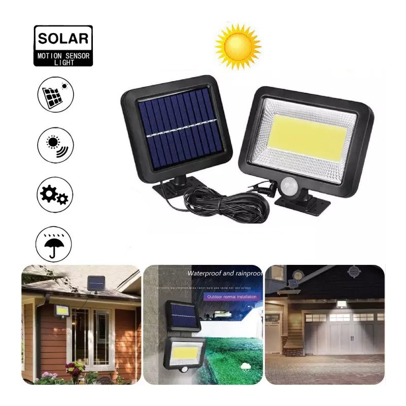 Соларна LED лампа със сензор за движение и отделен соларен панел за презареждане със слънчева или дневна светлина.