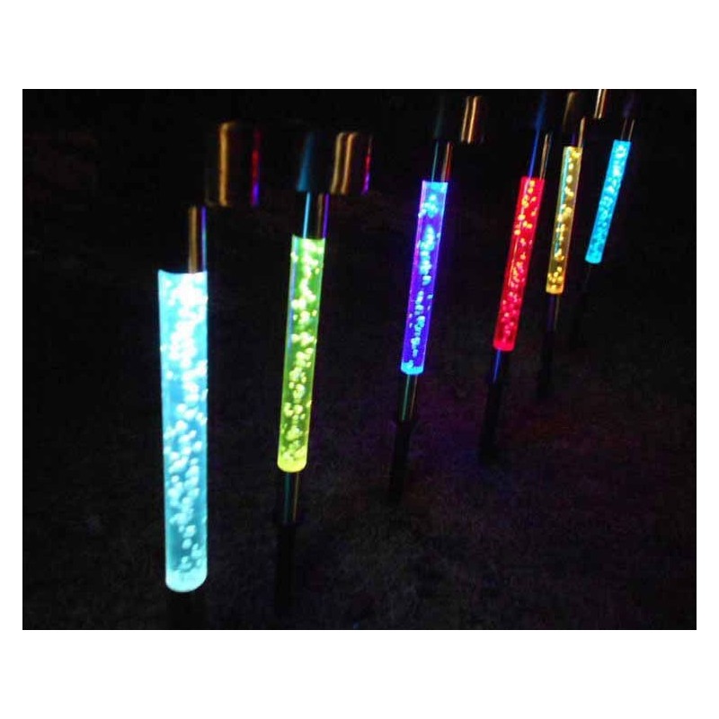 Градинска самозареждаща се от слънцето лампа с променящи се цветове, имитираща водни мехурчета. Изключително атрактивна идея за декорация на дворове, тераси, алеи и лятни градини. Тази соларна лампа променя цветовете си и създава красива цветна феерия в градината, когато се стъмни! Интересният дизайн с балончета създава магически ефект и превръща всяка лятна вечер във вълшебна атмосфера!