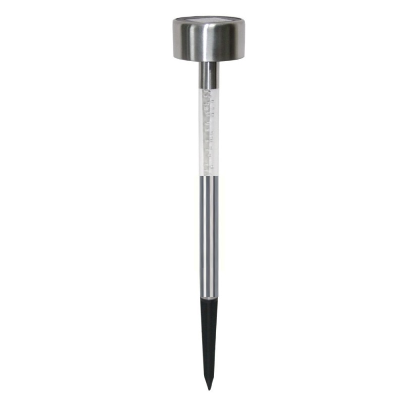 Лампата е изработена от неръждаема стомана с водоустойчив корпус и колче за забучване в почва (може и в саксия).