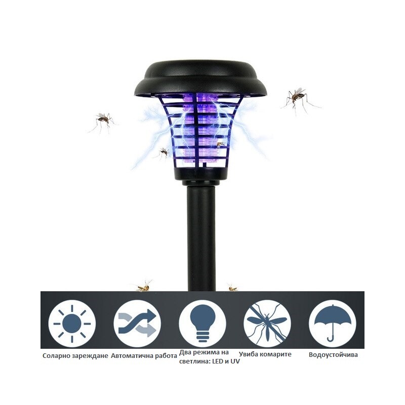 Соларна лампа за градина тип капан за комари. Сигурен начин да предпазите дома си от досадната напаст! Практично и ефективно решение да се справите с мухи, комари и други летящи насекоми - БЪРЗО, ЛЕСНО, ЕФИКАСНО и БЕЗ НЕРВИ!