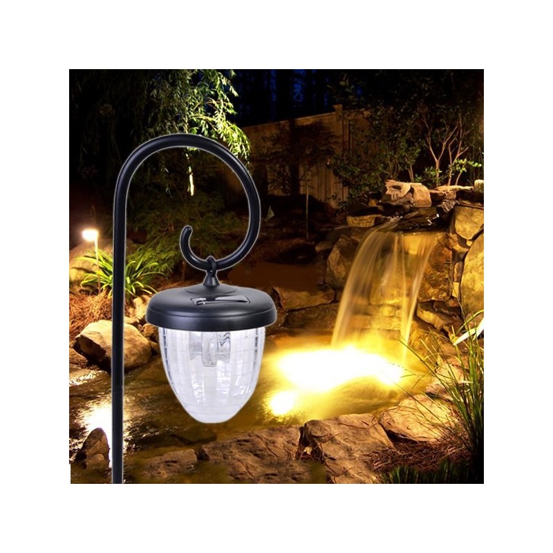 Красива соларна лампа за ефектна и романтична лятна обстановка. Изработена във формата на жълъд, висяща на извито колче, което се забучва в почвата. Страхотно допълнение към декорацията на Вашия, двор, тераса или лятна градина. Може да се използва и за осветяване на пътеки.