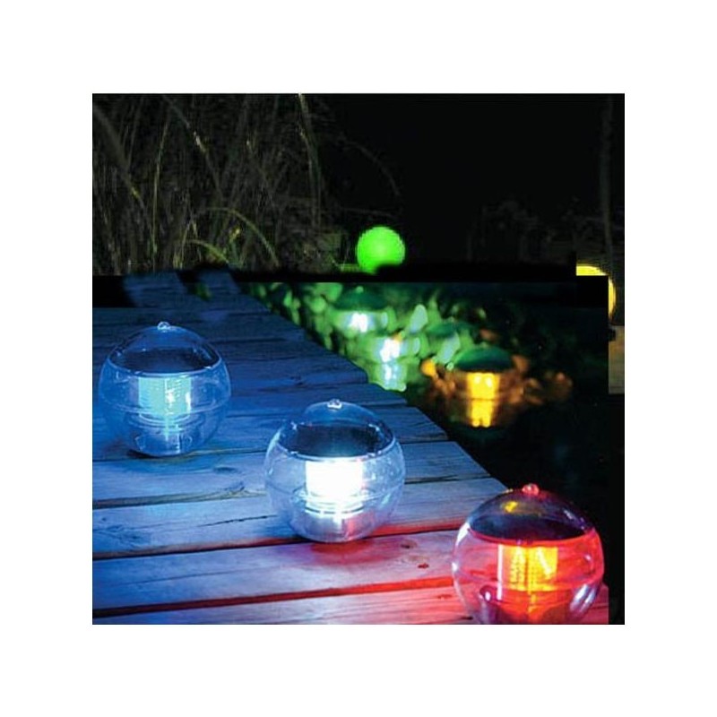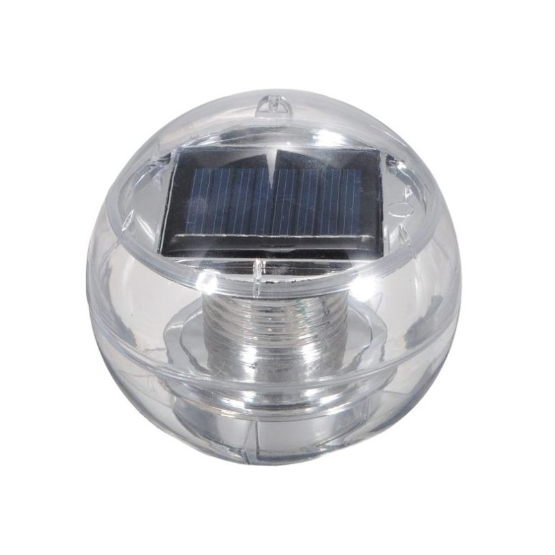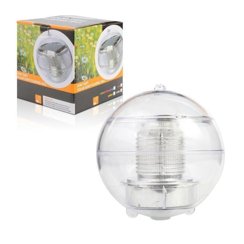 Декоративна лампа със слънчев панел и сменящи се 5 цвята. Красив дизайн във формата на прозрачно кълбо. Притежава водоустойчив корпус и вградена соларна батерия. На дъното на лампата има бутон за включване и изключване. Когато лампата е включена и около нея е затъмнено, сензорът реагира и автоматично започва да свети в различни цветове. Редува синьо, лилаво, зелено, жълто и червено. Изключително ефектно и атрактивно светлинно шоу!