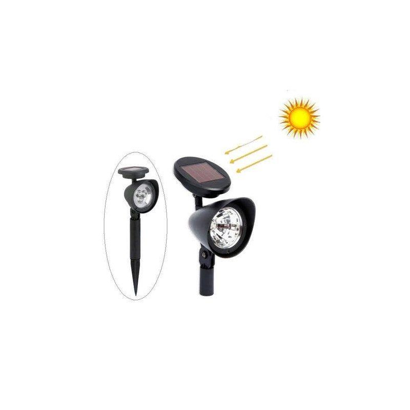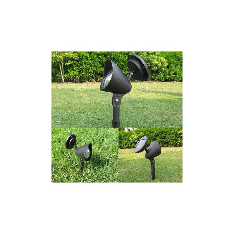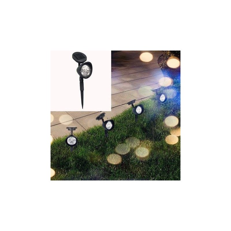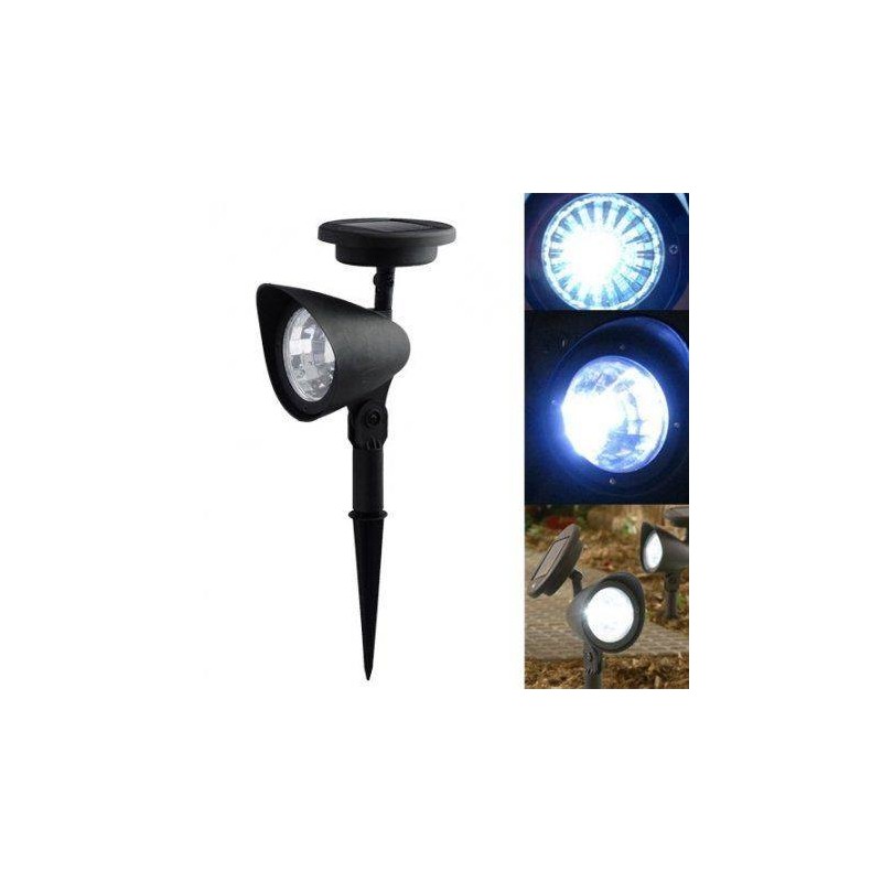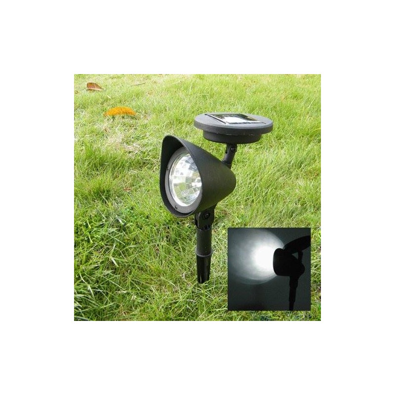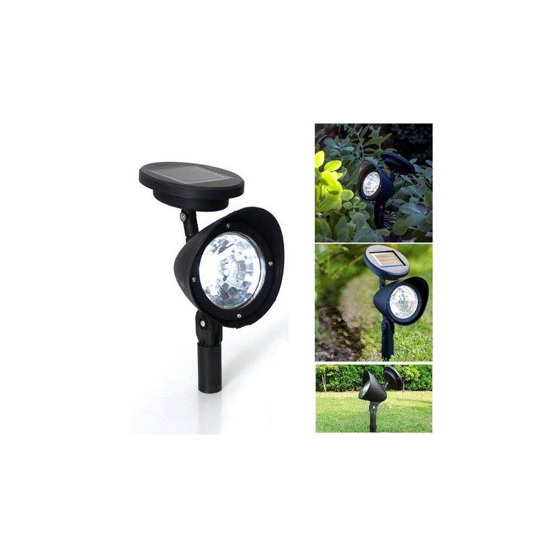Градинска соларна лампа тип прожектор с 3 LED диода за ярко осветяване на открито. Подходяща за осветяване на лятна градина, дворове, къмпинг и други. Предназначена е за забучване в почва. Притежева водоустойчив корпус, който я предпазва от атмосферни условия.