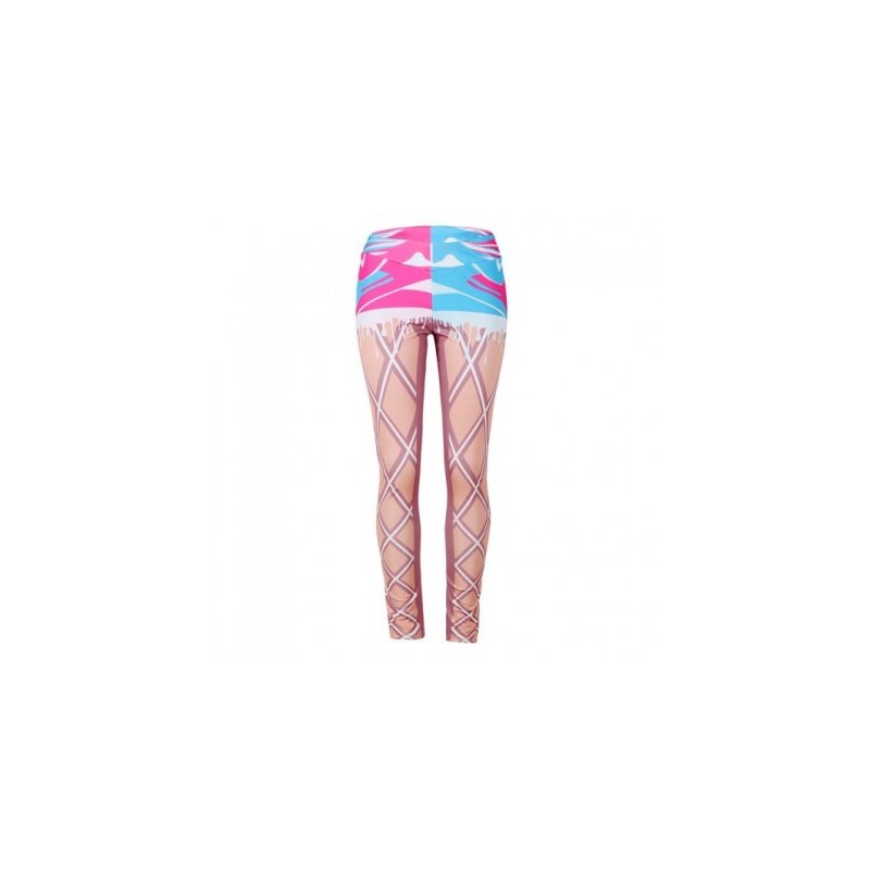 Изработен в свежа цветна комбинация на синьо и розово в горната си част под формата на къси панталонки и наподобяващ мрежест чорапогащник по дължината на краката, този клин няма да Ви остави незабележими.Поканете цветовете в спортният си гардероб!