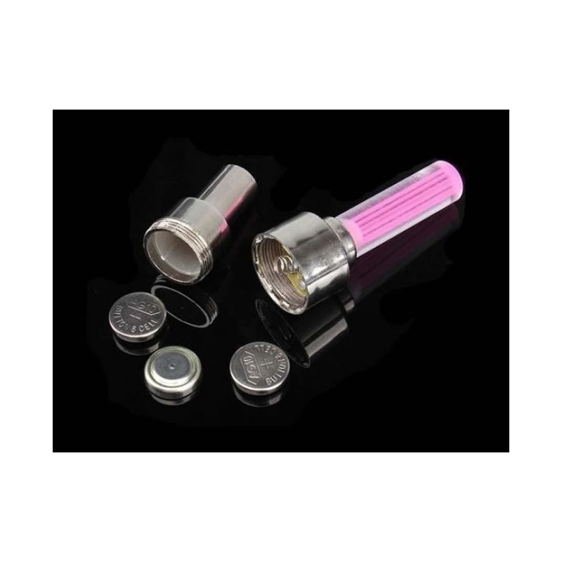 Комплект от 2 броя светещи LED капачки за вентили на автомобил, велосипед или мотоциклет - розови.