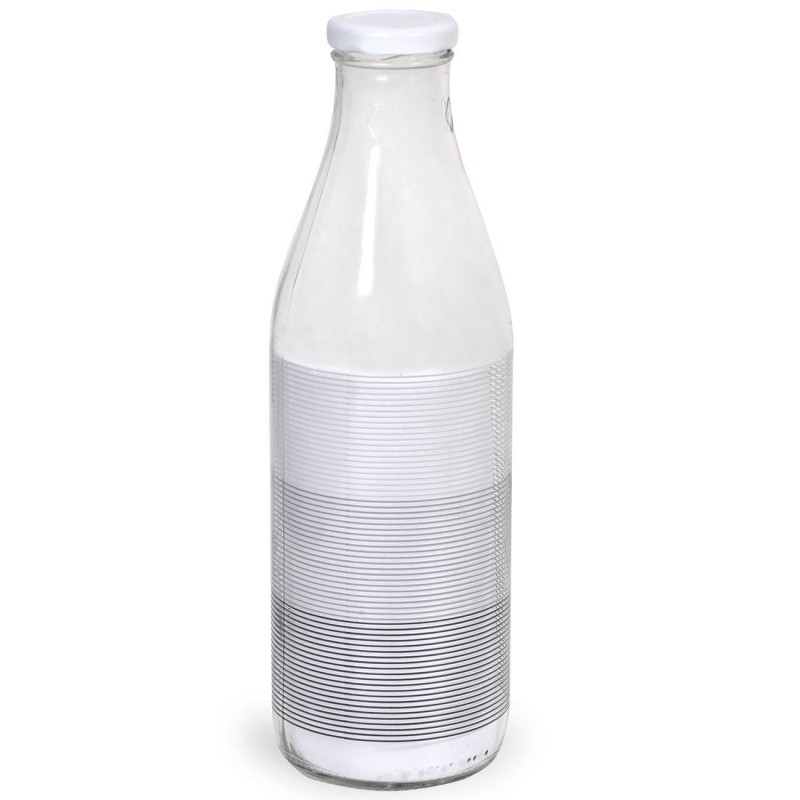 Бутилка за вода - стъклена - райе - метална капачка - 1 л.